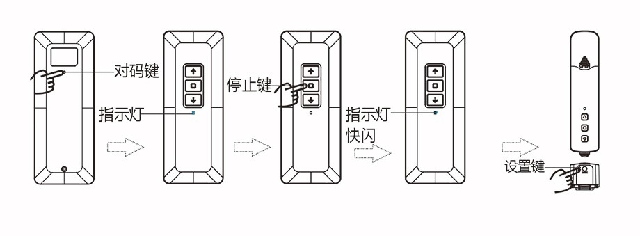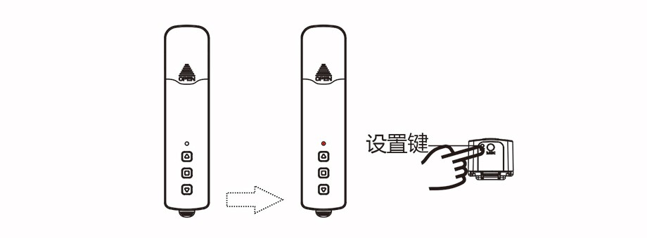 ◆長按電機【設置鍵】,直到電機【指示燈】紅色閃一下,松手;