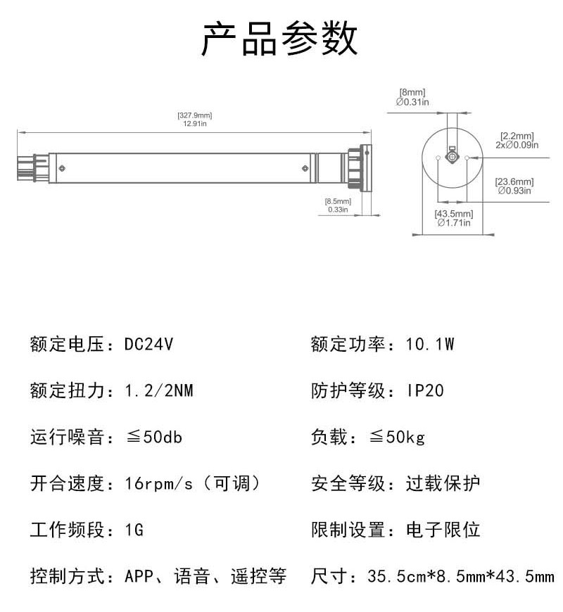 M2805EGWT插電型管狀窗簾電機(jī)